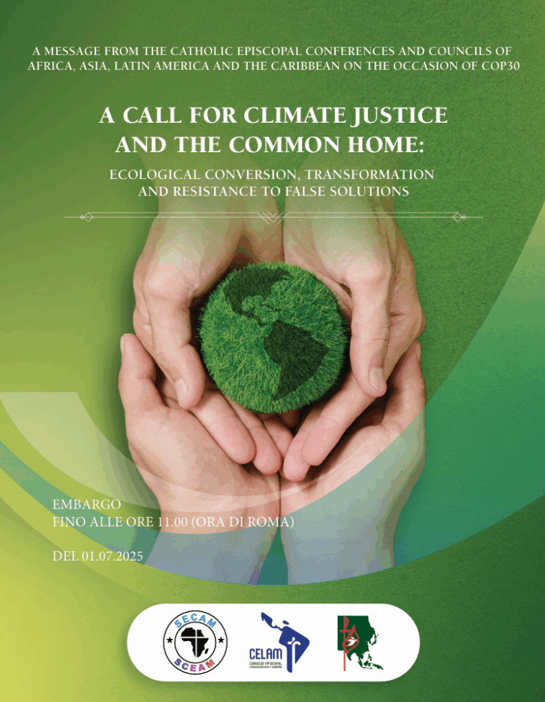 Nei giorni scorsi rappresentanti delle Chiese di cinque continenti hanno tenuto un simposio nel Colégio Santa Catarina De Sena di Belém per delineare le linee di una giustizia climatica autentica, che non cerchi scorciatoie o false soluzioni. I lavori hanno fatto riferimento al documento dalle Chiese del Sud globale elaborato dagli episcopati di America Latina E Caraibi, Asia e Africa, pubblicato lo scorso luglio in previsione della COP30: Appello per la giustizia climatica e la casa comune.