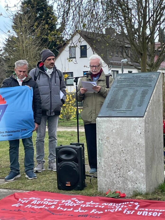 Giancarlo De Simoi legge il discorso commemorativo a 80 anni dall'eccidio nazista di Kassel del 31.03.1945 Foto:©ANPI-Francoforte