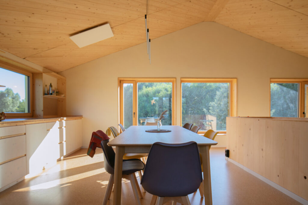 Per chi abita la casa, questo si traduce in un ambiente sano, con materiali naturali che regolano l’umidità, stabilizzano la temperatura e creano un microclima molto confortevole. Non ci sono impianti complessi, la ventilazione è naturale e il riscaldamento avviene con pannelli a infrarossi, semplici e poco invasivi. È un modo di abitare che riduce consumi, manutenzione e stress tecnologico.