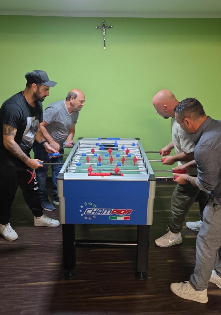 La nostra sede offre spazi dedicati a tutte le fasce di età. I giovani e gli adulti possono trascorrere il tempo nella stanza con il calcio balilla e la carambola, mentre gli anziani hanno a disposizione una sala per giocare a carte. I bambini possono muoversi liberamente e giocare in diverse aree, compreso un angolo attrezzato con giochi, pensati appositamente per loro.