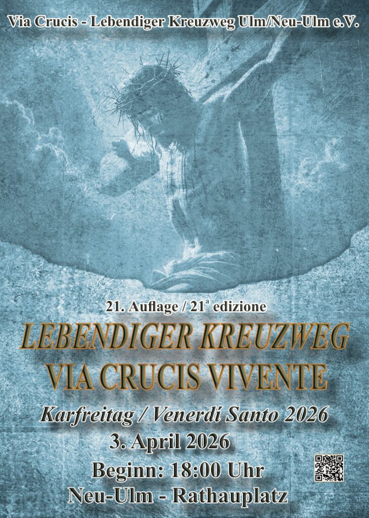 Quest’anno le Stazioni della Via Dolorosa sono 6. Sui grandi palcoscenici, allestiti dall’Associazione italiana della Via Crucis, ben 90 figuranti rievocheranno La Passione in costumi del tempo fra la Rathausplatz di Neu Ulm e la Münsterplatz di Ulm. Si inizierà con la Lavanda dei piedi, cui seguirà l’Orto degli Ulivi, la Cattura, Caifa, il Processo e la Crocifissione.